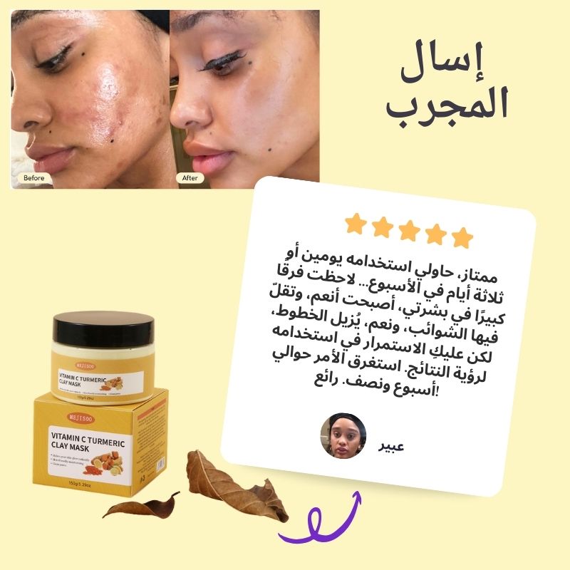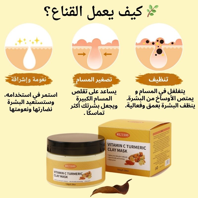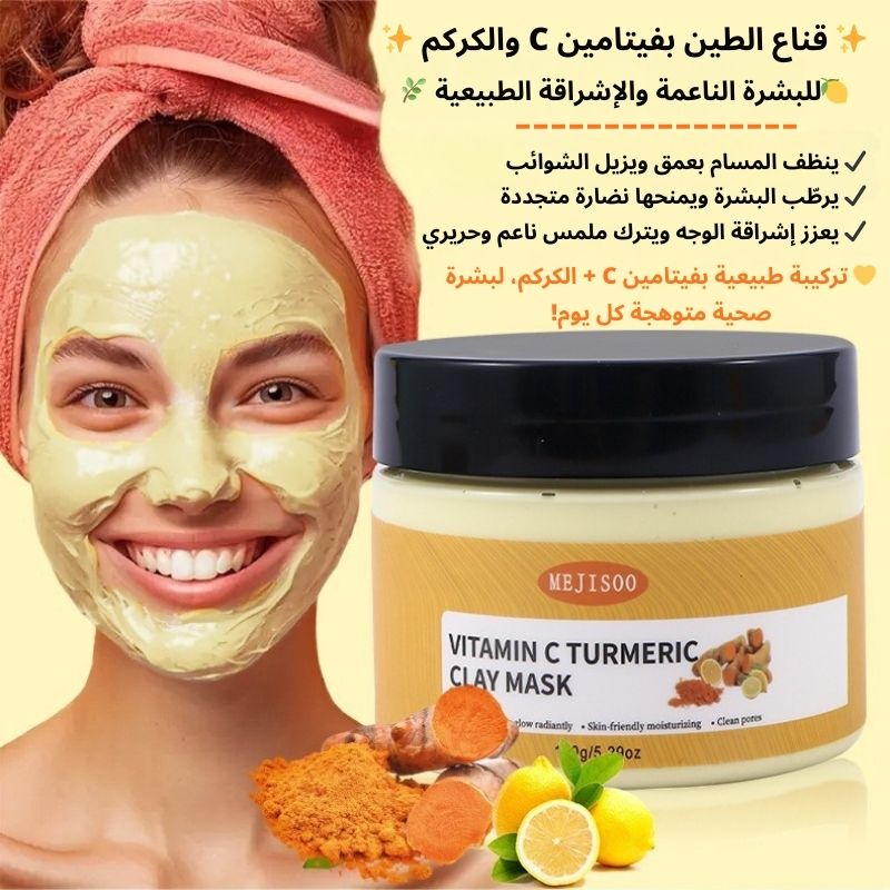 ✨ قناع الطين بفيتامين C والكركم – سر البشرة الناعمة والمشرقة ✨